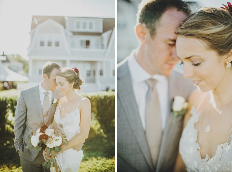 This beautiful summer wedding features gorgeous photos by Lisa Rigby Photography. Lush roses and green succulents are the perfect pairing for this Provincetown wedding. A long intimate table was a unique detail for this romantic event.